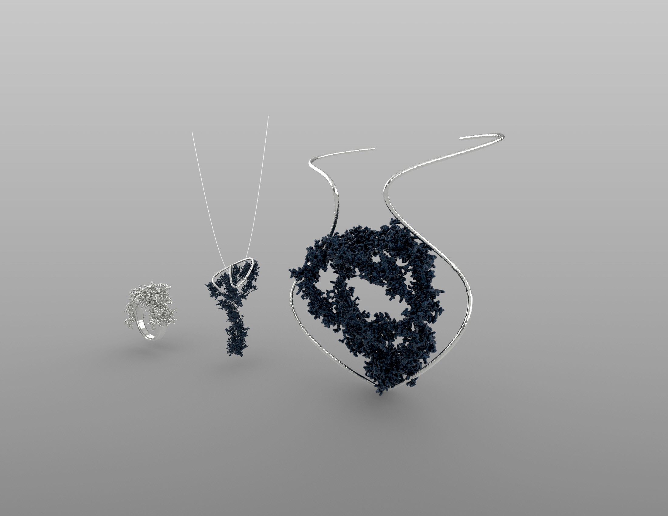 A series of generative jewelry we made in Stuttgart. Inspired by the intricate growth patterns of moss, we utilize algorithms to translate nature’s artistry into stunning, wearable pieces.